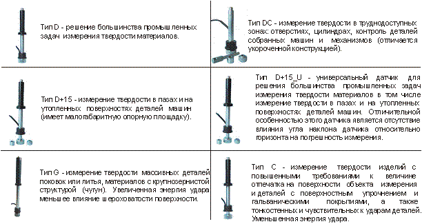 • наявність великої кількості змінних датчиків та насадок дозволяє вирішувати більшість промислових завдань вимірювання твердості виробів у процесі виробництва та експлуатації;